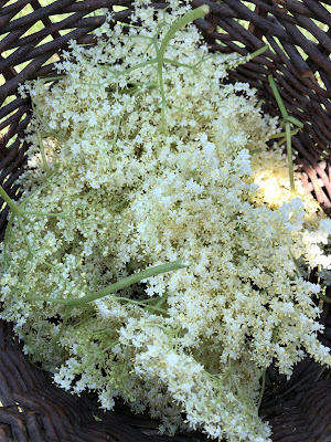I bowed to the elder trees which I encountered, asking permission to harvest and then once more at the end in thanks. Reaching as high as I could, gently pulling branches towards me and harvesting the fluffy white clouds of sweetness. I lost track of time and place, just going for the next branch and searching for the next possible umbels to gather, while watching my footing to avoid a tumble. I saw another tree so crossed the field of tall grasses nearly reaching my chest, the soft seed heads tickling my skin as they brushed against my arms. To walk on the earth and through the grass was so grounding, rather than my usual pavement walks up the road lately.